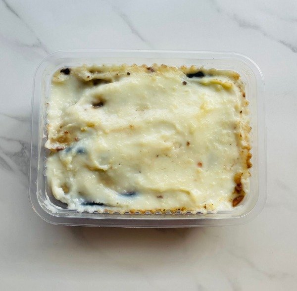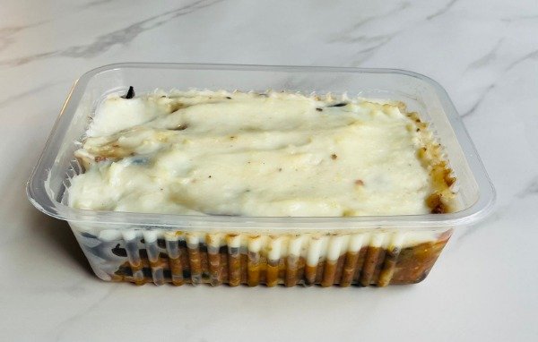 Musaka elaborada con berenjenas salteadas en oilva, picadillo de carne de ternera, salsa blanca y queso parmesano (todo con leche deslactosada)